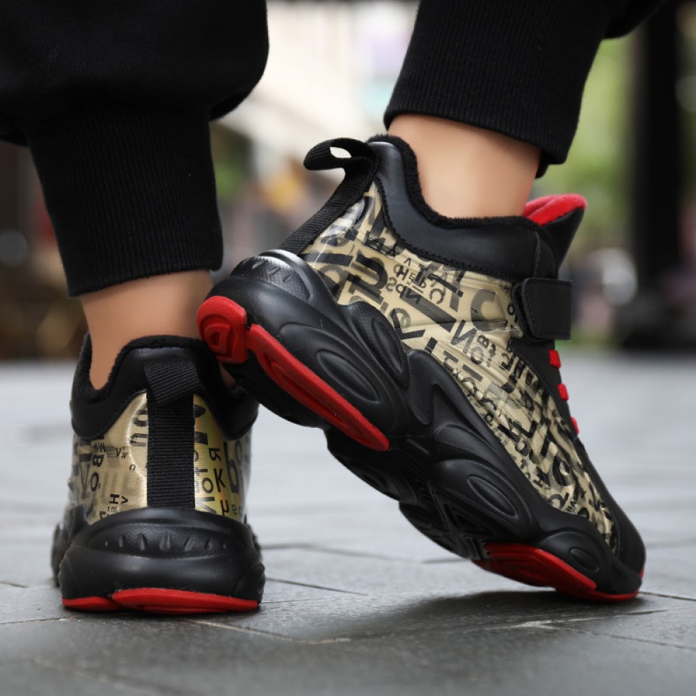 Winter New Boys' Cotton Shoes Children's Big Cotton Shoes Hot Style Plus Wool Warmth Non-Slip Plus Velvet Sneakers