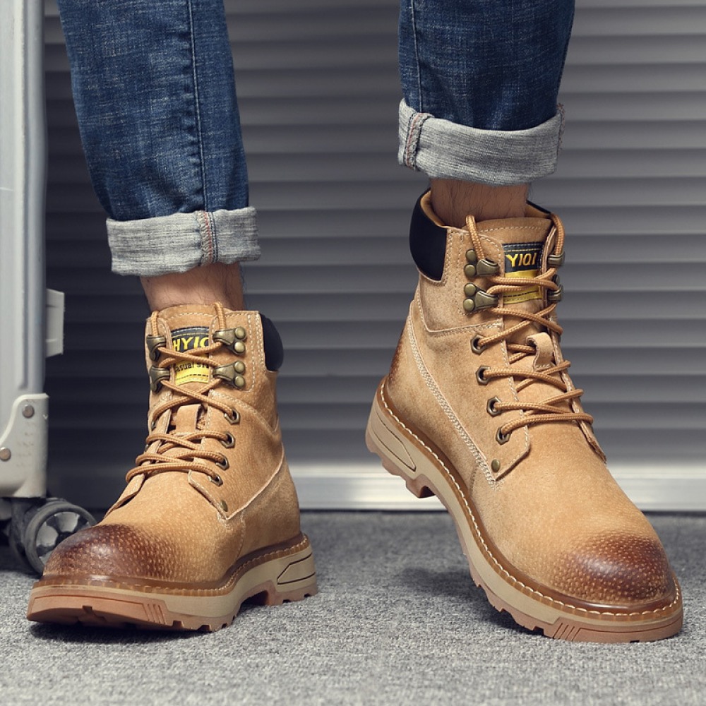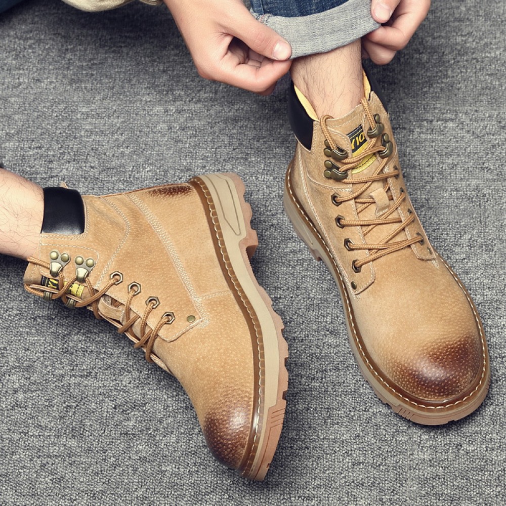 Martin Boots Men's Autumn New Leather Boots Leather Casual Mid-Cut Tooling Boots High-Top Mens Shoes