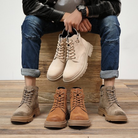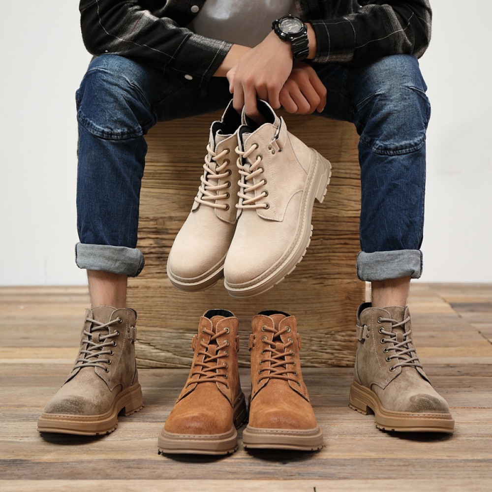Martin Boots Men's Leather Short Boots Casual Trend Tooling Boots Autumn and Winter High-Top Mens Shoes