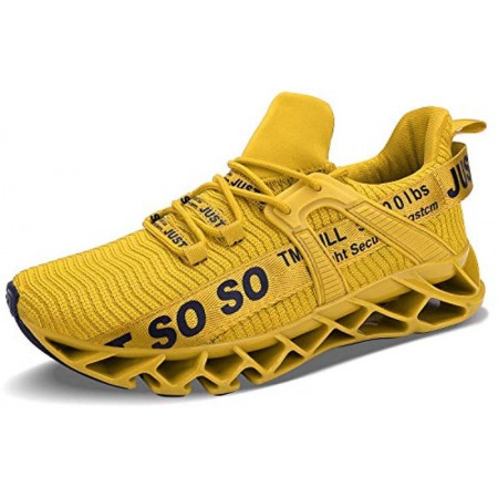 Mens Runing Shoes Walking Non Slip Blade Type Sneakers Yellow