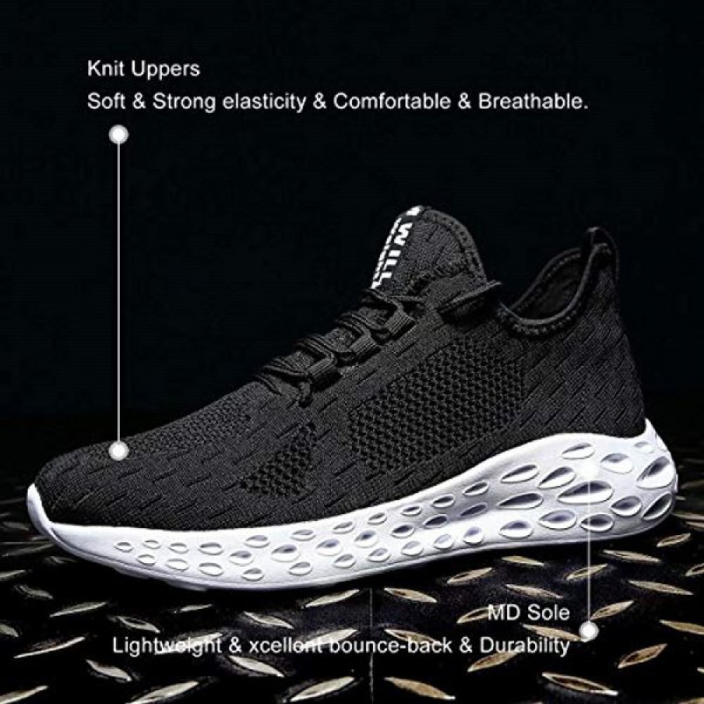 Men's Breathable Mesh Tennis Shoes Comfortable Gym Sneakers Lightweight Athletic Running Shoes Black