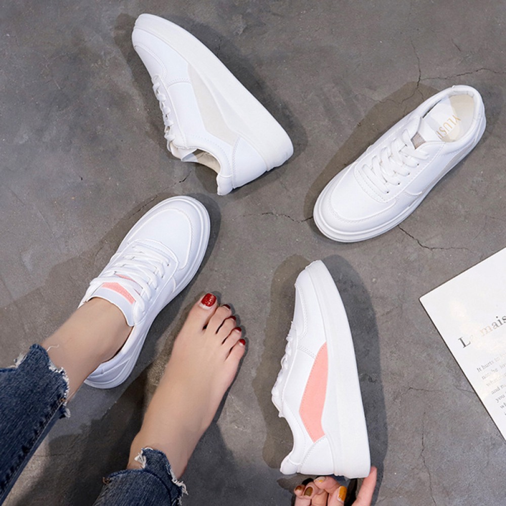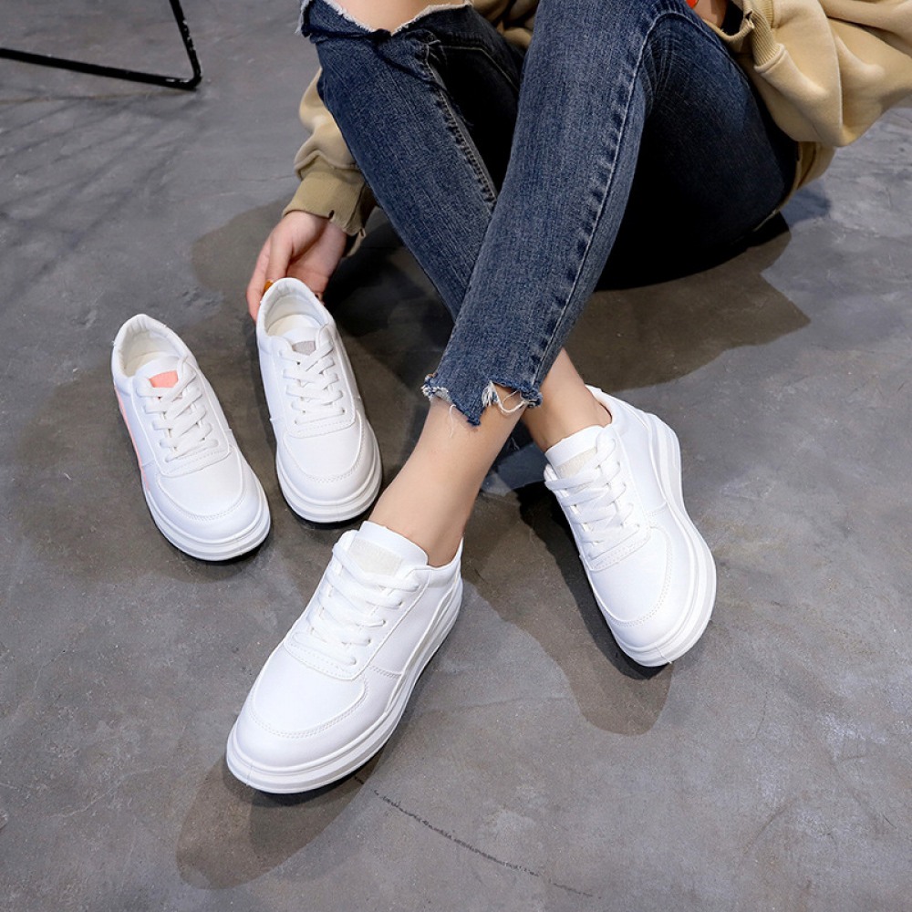 Spring New White Shoes Female Leather Student Shoes Female Running Flat Shoes Casual Shoes