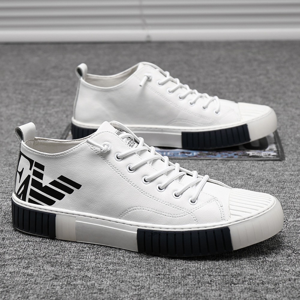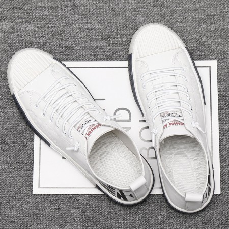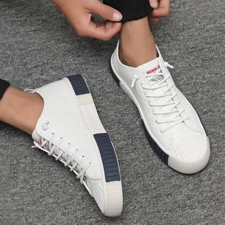 Summer Men's Board Shoes Soft Leather European Station White Shoes Men's Leather Trendy Shoes Shell-Toe Daily Casual Shoes