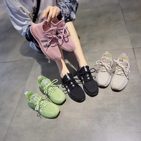 Spring New Sports Shoes Female Breathable Student Running Board Shoes Flying Woven Fitness Women's Shoes